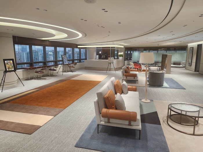 | ▲ 탁 트인 전망을 품은 ‘호텔라운지 같은 PB룸’ 컨셉의 우리은행 ‘투체어스W도곡’ (사진=우리은행 제공) |