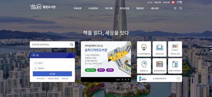 [시민일보 = 이대우 기자] 송파구(구청장 박성수)가 ‘송파구 통합도서관’ 홈페이지를 인공지능, 반응형 웹 구축 등 최신기술을 기반으로 새롭게 개편해 선보였다.