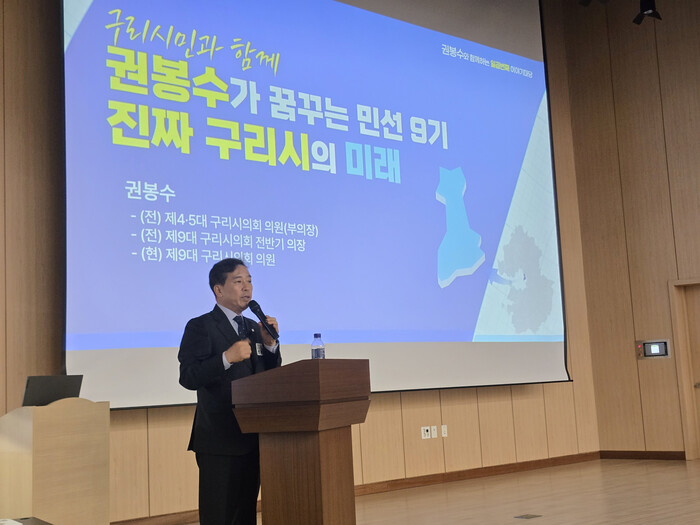특히, 강연회 중 눈길을 끌었던 것은 현재 구리시 현안 중 블랙홀처럼 모든 것을 빨아들이고 있는 ‘구리시 서울 편입’에 관한 권봉수 구리시의원의 정견으로, “구리시 서울 편입과 관련하여 구리시민을 찬성파와 반대파로 양분하도록 조장하는 행위는 매우 나쁜 정치”로 규정했다. 그러면서, 구리시 주요 지표(재정자립도, 소상공인 3년 생존율, 청년고용률 등)의 낮은 수치를 소개하며 “경기도 평균보다 낮은 주요 지표들, 주변 신도시들 성장에 비견되어 시민들에게 구리시가 상대적으로 정체되고 낙후된 도시가 되었다고 인식하게 하고 있다.”고 진단하며, “현재 구리시민들은 서울 편입을 통한 서울시의 혜택을 기대하고 있는 막연한 기대심리가 작동하고 있는 것”이라 분석했다.