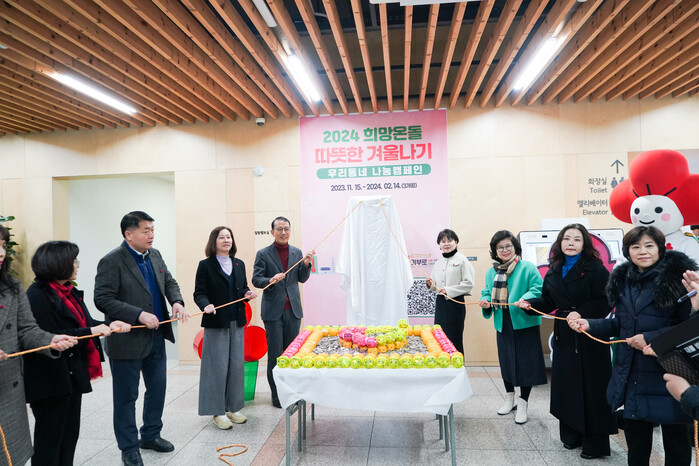 [시민일보 = 이대우 기자] 서울 동대문구(구청장 이필형)는 최근 구청 1층 로비에서 ‘2024 따뜻한 겨울나기 사랑의 온도탑 제막식’을 진행했다.