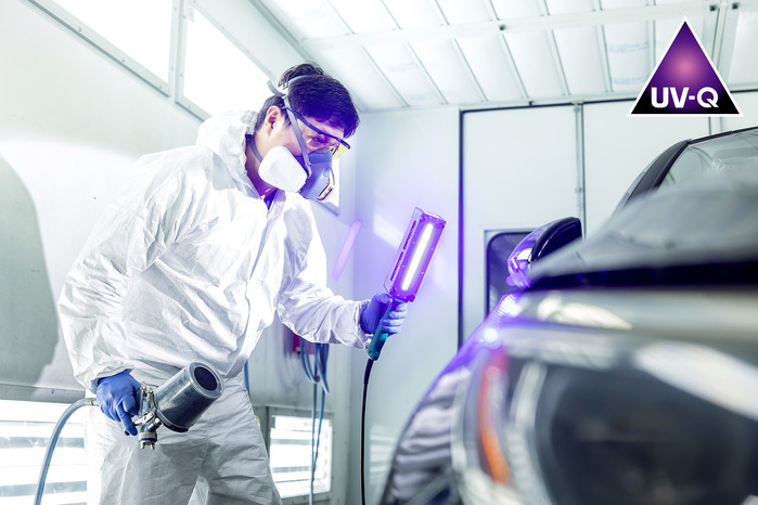 UV-Q시스템은 퍼티와 서페이서를 한 번에 커버하는 획기적인 제품이다. 또 UV(자외선)건조 방식을 적용해 A4용지 면적 기준 30~60초 후에 연마가 가능하며, 기존 30분이 소요되었던 도막두께 3mm 경화 작업을 1분으로 단축할 수 있어, 기존 공정과 비교했을 때 작업량을 약 1.5배 상승시킬 수 있는 효과를 발휘한다.