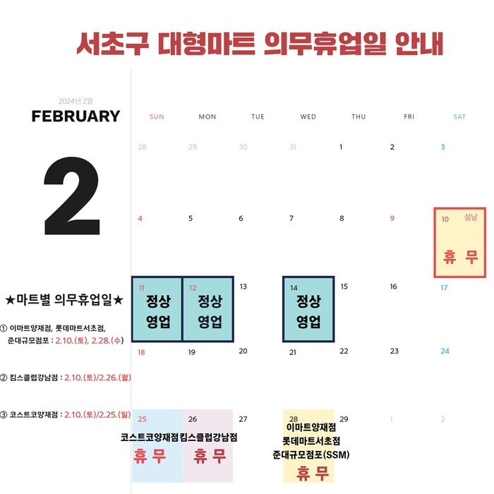 | ▲ 2월 서초구 대형마트 휴무일정. |
