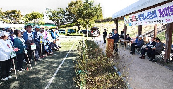 | ▲ 박일호 밀양시장이 제23회 밀양시장배 게이트볼대회에서 인사말을 하고 있다. |