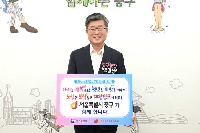[시민일보 = 여영준 기자] 김길성 중구청장이 최근 저출산·고령화 문제에 대한 사회적 인식을 높이기 위해 ‘인구문제 인식개선 릴레이 캠페인’에 참여했다.