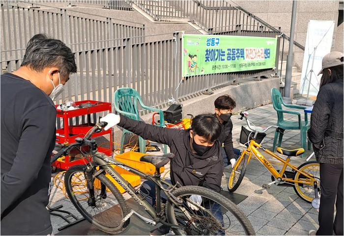 | ▲ 찾아가는 공동주택 자전거 수리서비스. (사진제공=성동구청) |