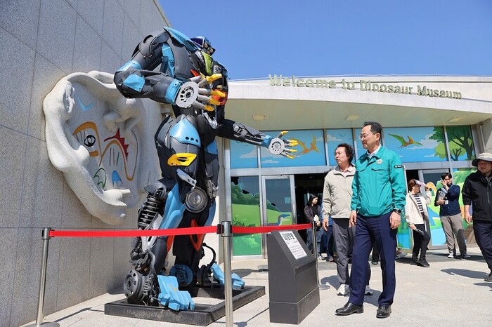 | ▲ 명현관 군수, 공룡박물관 정크아트 로봇 등 현장 점검 / 해남군 제공 |