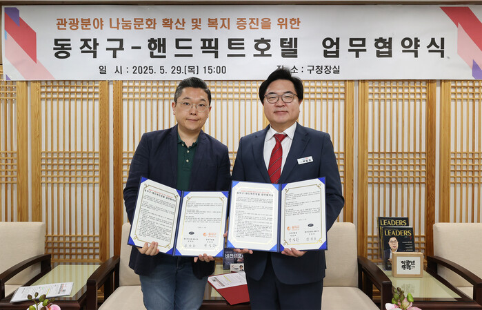 협약식은 지난 29일 오후 3시 구청장실에서 박일하 동작구청장과 김성호 핸드픽트호텔 대표이사가 참석한 가운데 열렸다.