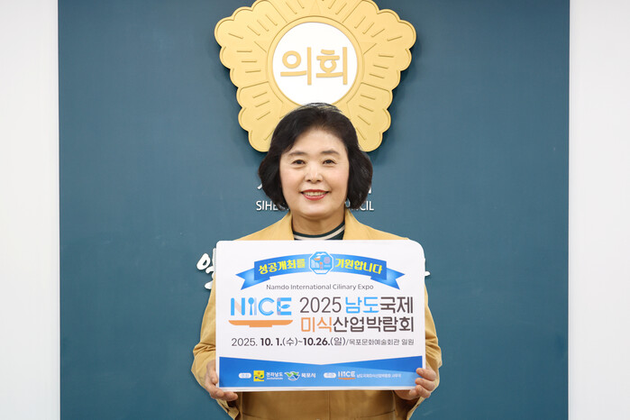 | ▲ 시흥시의회 오인열 의장이 ‘2025 남도국제미식산업박람회’의 성공적 개최를 기원하며 22일 ‘릴레이 응원 챌린지’에 동참했다 /사진제공=시흥시의회 |