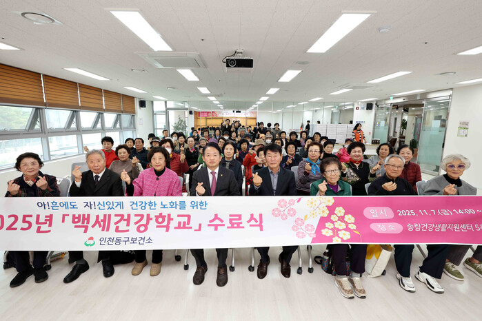 [인천=문찬식 기자] 인천 동구(구청장 김찬진)는 지난 7일 송림건강생활지원센터에서 ‘2025년 백세건강학교 수료식’을 개최했다고 밝혔다.