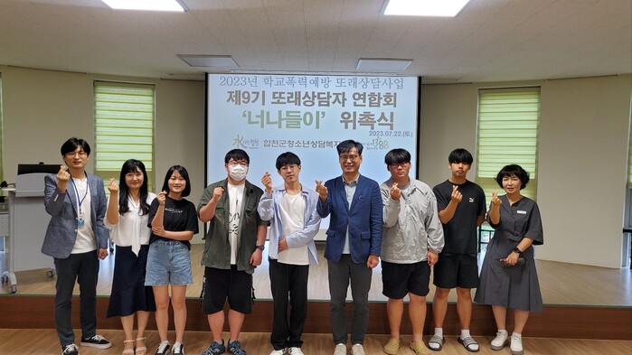 문동구 합천군청소년상담복지센터장은 “청소년 고민상담자 1순위인 또래가 먼저 다가가 도움의 손길을 준다면 학교폭력예방에 가장 큰 힘이 될 것이고, 나 혼자가 아니라 함께 해결하는 분위기를 조성해 청소년들이 폭력없이 건강하게 성장할 수 있도록 적극 노력해줄 것”을 당부했다.