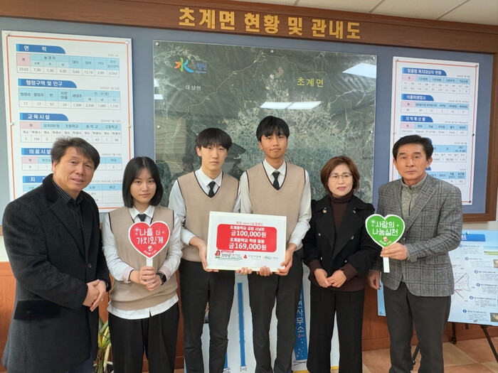 박은숙 초계면장은 "추운 날씨에 소외된 이웃들을 생각하는 학생들의 따뜻한 나눔 실천에 깊이 감사드린다"며 "학생들의 정성스런 마음이 필요한 곳에 전해지도록 최선을 다하겠다"고 전했다.