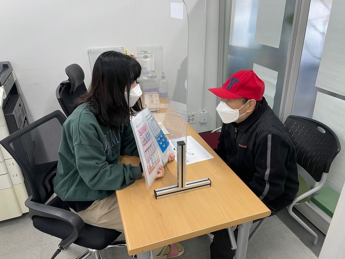 서울 광진구 중곡1동 주민센터가 오는 18일까지 어르신일자리 사업 참여자 40명을 대상으로 '맞춤형 복지상담'을 실시한다. 참여자와 복지플래너 등이 1대1로 진행하는 맞춤형 복지상담은 참여자 안전사고 예방교육(코로나19, 겨울철 미끄럼 및 낙상방지) 등으로 이뤄진다. 사진은 최근 맞춤형 복지상담이 진행되고 있는 모습. (사진제공=광진구청)