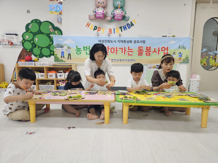 한편, 합천군육아지원센터는 상시 운영 중인 놀이체험실, 도서·장난감 대여가 가능한 어린이 도서관, 백일상·돌상 대여 서비스와 정서발달을 위한 ‘우리아이 나뭇길’ 등이 마련되어 있으며, 다양한 부모 교육 및 체험 프로그램도 진행 중이다.