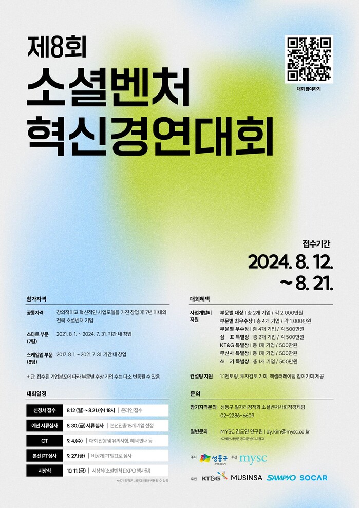 | ▲ 제8회 소셜벤처 혁신경연대회 포스터.(사진=성동구청 제공) |