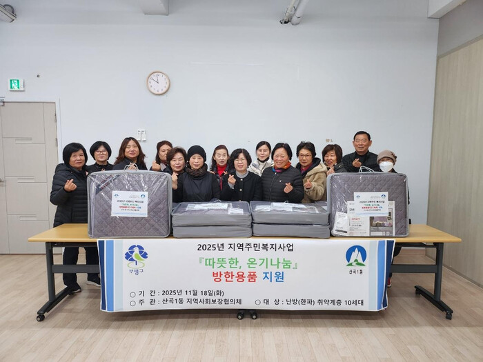 [인천=문찬식 기자] 인천 부평구(구청장 차준택) 산곡1동 지역사회보장협의체는 지난 18일 ‘따뜻한 온기나눔 방한용품 지원사업’을 통해 지역 내 난방 취약계층 10세대에 전기매트를 전달했다.