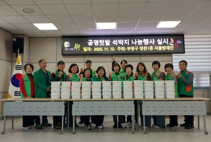 [인천=문찬식 기자] 인천 부평구(구청장 차준택) 청천1동 자율방재단은 지난 12일 지역 내 취약계층을 돕기 위한 ‘공영텃밭 석박지’ 나눔 행사를 진행했다.