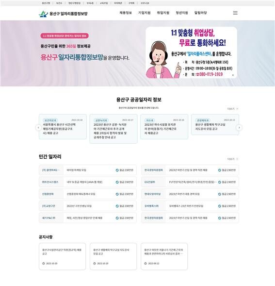 용산구 일자리통합정보망은 ▲공공·민간 채용정보 ▲기업지원 ▲취업지원 ▲청년지원 등을 제공해 일자리 관련 정보를 한곳에서 확인할 수 있다.