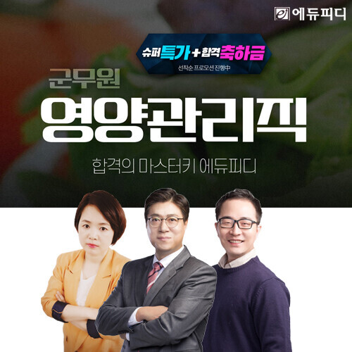 에듀피디가 선보이는 군무원 7·9급 영양관리직 전용 ‘합격패키지’ 강좌는 ‘이론+문풀+기출해설’ 과정으로 구성되어 있으며, 개념 정립을 돕는 ‘기본이론’과 학습한 이론을 문제에 적용해 회독 효과를 높이는 ‘문제 풀이 훈련’, 기출문제 풀이로 취약점 보완 및 최종 마무리 학습이 가능한 ‘기출해설특강’ 과정으로 진행된다.