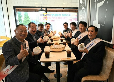 | ▲ 마산석전DT점에서 실시된 ‘창녕갈릭 버거’ 시식회 사진 |