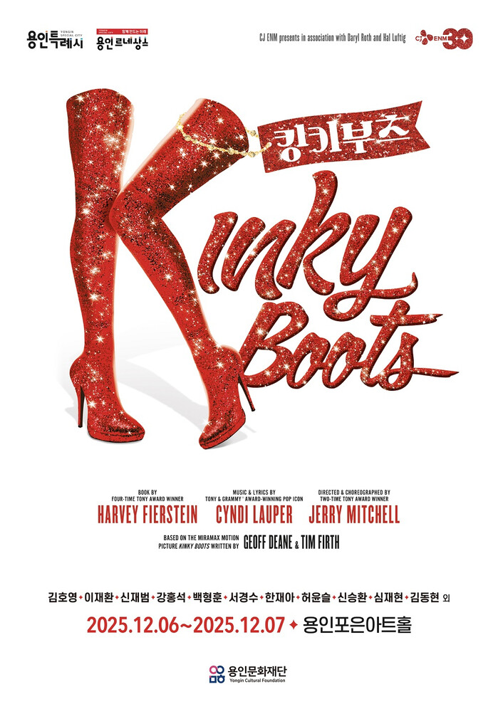[용인=오왕석 기자] 용인문화재단(이사장 이상일)은 오는 12월 6일부터 7일까지 용인포은아트홀에서 뮤지컬 ‘킹키부츠’를 선보인다. 이번 공연은 양일간 오후 2시와 7시, 총 4회 진행되며, 관람 연령은 만 8세 이상으로 미취학 아동은 입장이 불가하다.