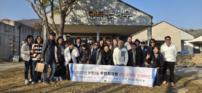 [인천=문찬식 기자] 인천 부평구(구청장 차준택) 부평2동 주민자치회는 지난 12일 위원 30여 명이 참여한 가운데 강화도 ‘큰나무 캠프힐’로 선진지 견학을 다녀왔다.