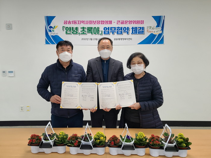[고양=이기홍 기자] 고양시 삼송1동행정복지센터는 삼송1동지역사회보장협의체와 큰골운영위원회가 홀몸 어르신의 고독사를 방지하고 정서적 만족감을 높일 수 있도록 반려식물을 지원하는 ‘안녕, 초록아’ 업무협약을 23일 체결했다고 밝혔다.
