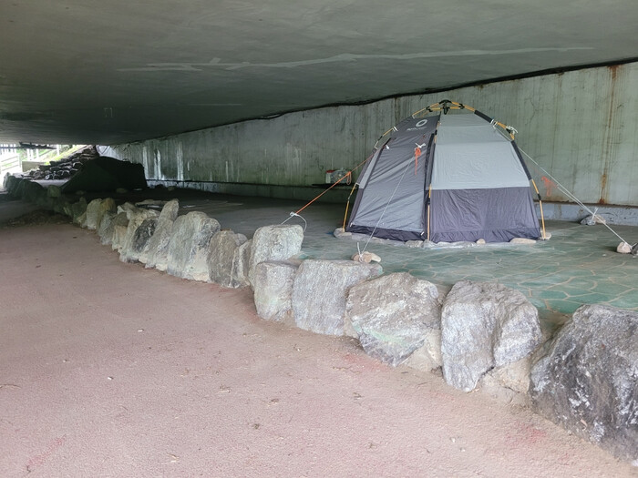 | ▲ 용인특례시 처인구가 김량장동 하천변에서 노숙생활을 하던 60대 남성을 발견해 지원했다. 사진은 A씨가 생활했던 텐트의 모습 |