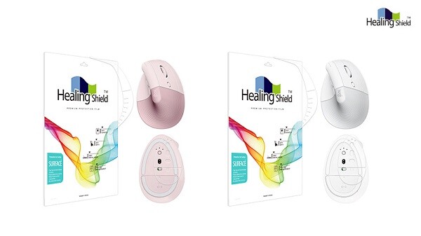 특히 무광 매트를 제외한 3가지 제품군의 경우 확연한 컬러와 디자인 및 질감으로 인해 부착 시 나만의 무선 마우스 제품군으로 변경이 가능하다.또한 힐링쉴드 로지텍 버티컬 리프트 무선 마우스 전용 보호필름의 경우 전문가의 1:1 계측 시스템을 통해 마우스의 하단, 클릭 스위치 커버 등 플라스틱 소재가 적용된 부분에만 부착이 가능하도록 제품을 디자인했으며 부착 시 해당 기기의 그립감 변화를 최소화 한 제품군이다.
