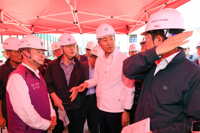 이 구청장과 오세훈 서울특별시장은 공사현장 관계자로부터 공정 상황 및 설계구조 등에 대해 브리핑을 받고 건축에 쓰이는 콘크리트 강도를 확인하는 등 현장을 꼼꼼히 살폈다.