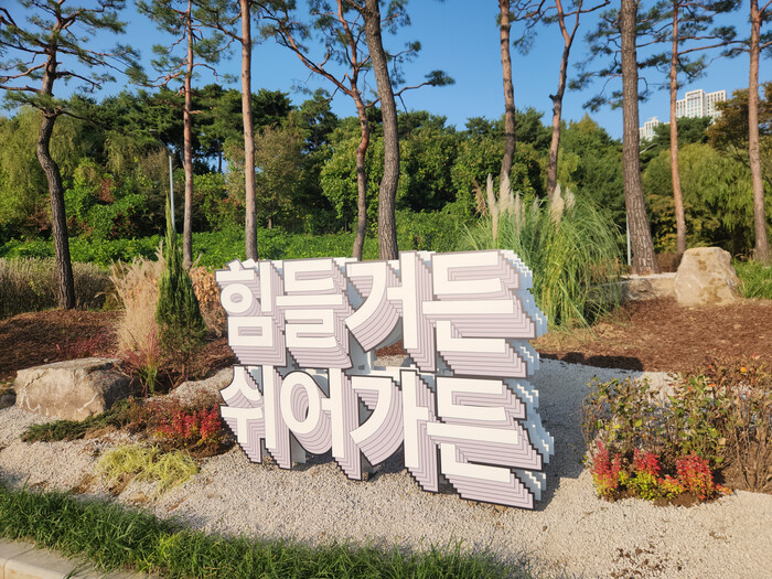 ‘찰나의 숲, 기억의 정원’을 주제로 조성된 ‘힘들거든 쉬어가든’은 장시간 운전과 교통체증으로 피로해진 마음이 ‘찰나’의 순간에 자연으로 치유되는 정원이라는 의미를 담고 있다.