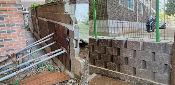 인광빌라 담장은 그동안의 집중호우 등으로 상당 부분 무너지고 균열이 발생하는 등 위험한 상태로 방치돼 주민들의 안전과 재산 보호에 큰 위협이 됐다.
