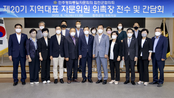 민주평통 지역대표 자문위원은 지난 6월1일 제8회 전국동시지방선거에서 당선된 합천군의원 11명과 도의원 1명이 해당되며, 이날 위촉식에는 조삼술 합천군의회 의장을 비롯한 군의원들과 장진영 도의원이 참석하여 자문위원으로 위촉되었다.