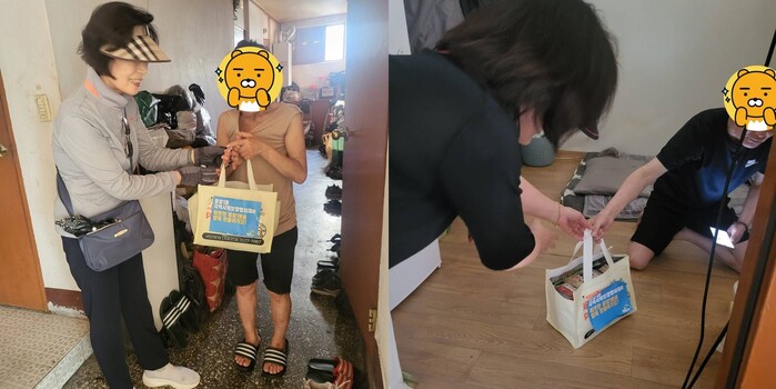| ▲ 주거 취약계층에 ‘사랑의 생필품 꾸러미’ 전달하는 모습 (사진=은평구청 제공) |