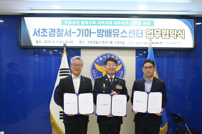 [시민일보 = 이대우 기자] 서울 서초구(구청장 전성수)에서 건립하고 푸른나무재단이 운영하는 방배유스센터는 최근 서초경찰서에서 기아 ‧ 서초경찰서와 업무협약을 체결했다.
