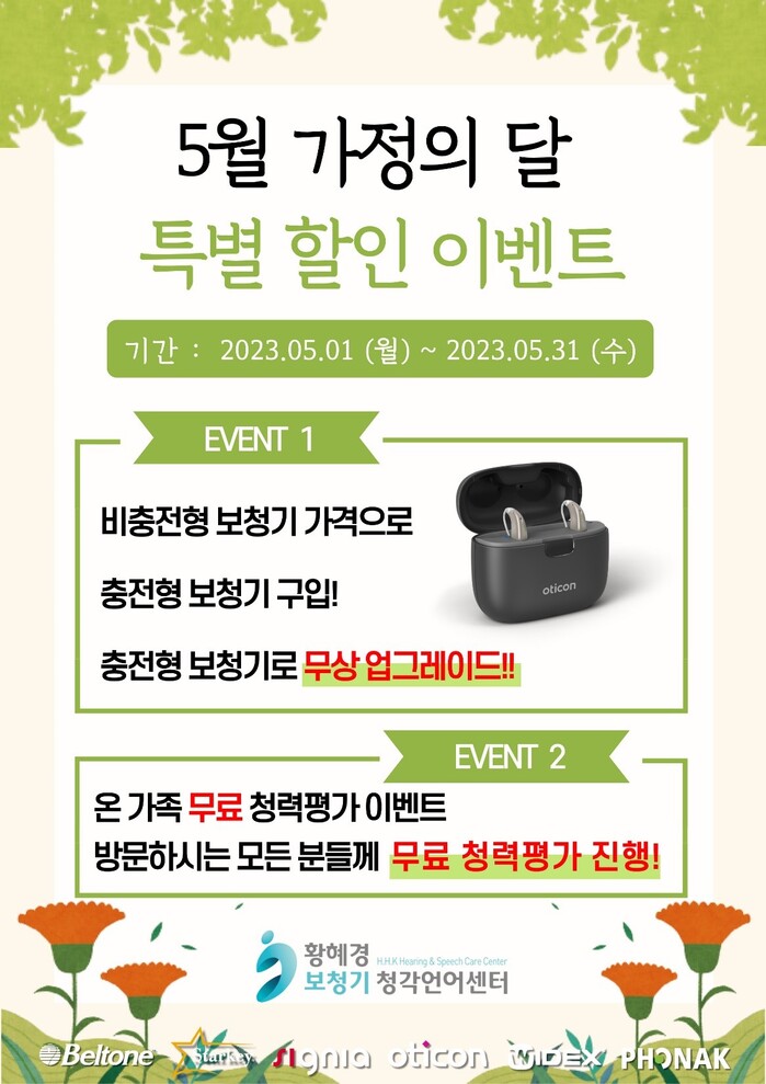가정의 달을 맞아 황혜경보청기 청각언어센터에서는 특별 할인 이벤트를 진행한다.