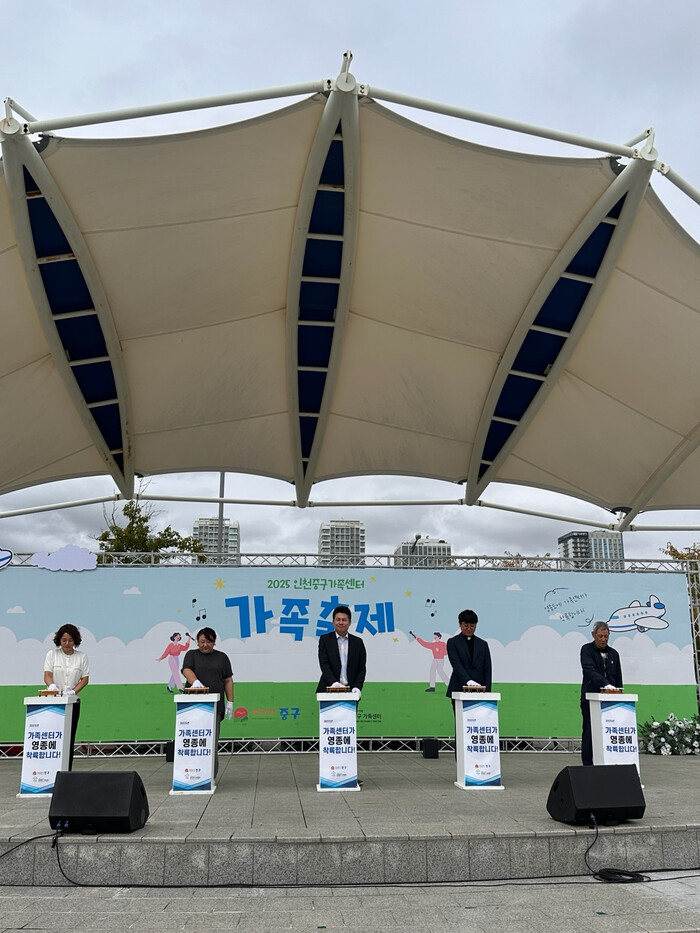 [인천=문찬식 기자] 인천중구가족센터(센터장 정광웅)는 지난 13일 씨사이드파크 하늘구름광장일대에서 ‘가족센터가 영종에 착륙합니다’를 주제로 ‘가족 축제’를 성황리에 개최했다고 밝혔다.