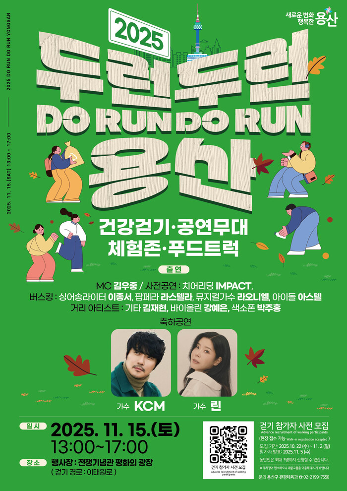 [시민일보 = 문민호 기자] 용산구(구청장 박희영)가 오는 15일 토요일 오후 1시부터 5시까지 전쟁기념관(이태원로 29) 평화광장에서 ‘2025 두런두런 용산’ 행사를 개최한다.
