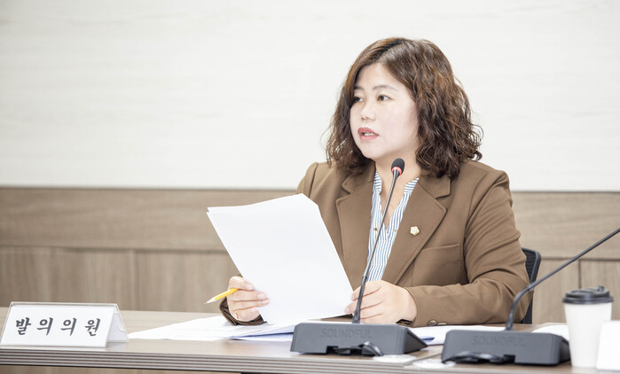 | ▲ 안산시의회 박은정 의원이 지난 14일 제293회 임시회 제1차 의회운영위원회에서의 모습 /사진제공=안산시의회 |