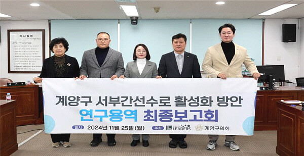 [인천=김형만 기자] 인천시 계양구의회 의원연구단체인 ‘서부간선수로 활성화 연구회’가 11월 25일 의회 세미나실에서 관련 연구용역 최종보고회를 개최했다.