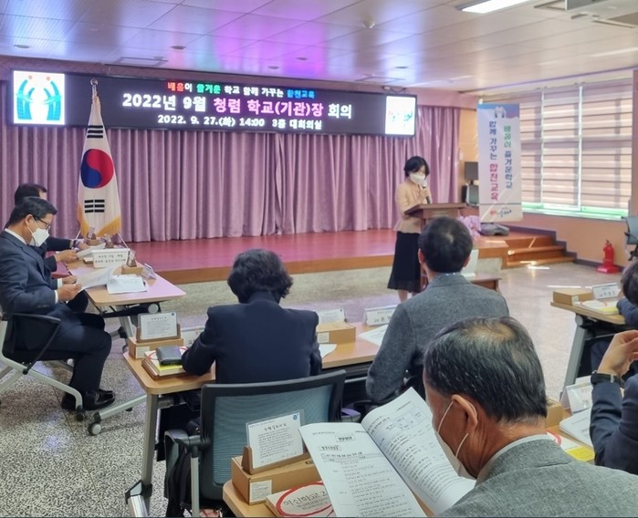 이어서 행정지원과장(천유선)이 학교(기관)장을 대상으로 부패 관련 감사 지적 사항, 청렴 의무위반 징계 기준 등에 관한 내용을 교육하고, 부패취약분야 개선을 위해 함께 노력할 것을 당부하였다.