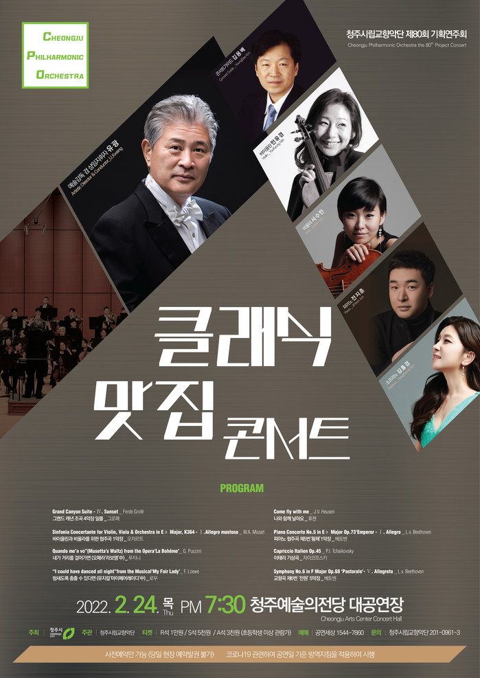 청주시립교향악단(예술감독 겸 상임지휘자 유광)은 오는 2월 24일(목) 저녁 7시 30분 청주예술의전당 대공연장에서 선보이는 제80회 기획연주회 <클래식 맛집 콘서트> 티켓 예매를 공연세상을 통해 시작했다.
