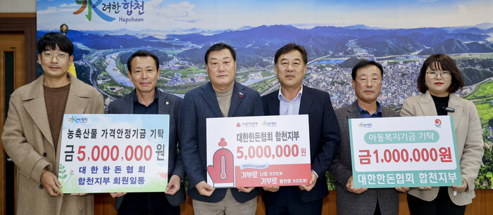 대한한돈협회 합천지부는 매년 어려운 이웃과 소외계층을 위한 성금과 농‧축산인들을 위한 기금을 기탁해오고 있다.