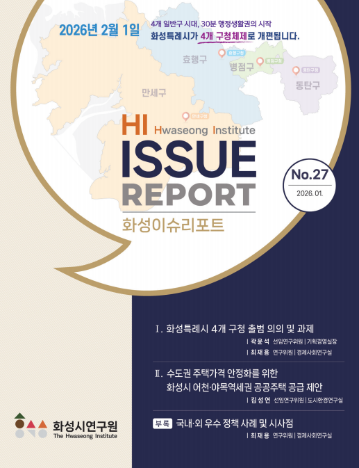 화성이슈리포트 제27호는 화성시연구원 홈페이지 및 화성시청 홈페이지 시정알림방에서 확인할 수 있다