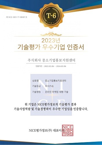 중소기업홍보지원센터 관계자는 “이번 기술평가 우수기업 선정으로 앞으로도 더 많은 중소상공인들을 위한 다양한 마케팅 지원사업을 펼칠 예정이다.”며 소감을 밝혔다.