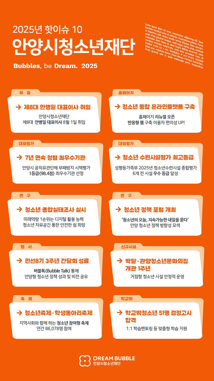 | ▲ 2025년 안양시청소년재단 핫이슈 10 선정(인포그래픽) /자료제공=안양시 |