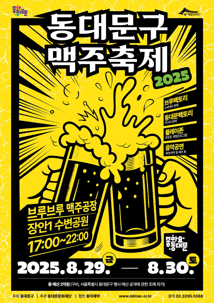 [시민일보 = 이대우 기자] 동대문문화재단(이하 재단)이 오는 29~30일 장안1수변공원 일대에서 ‘2025 동대문구 맥주축제’를 개최한다.