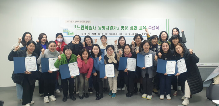 [시민일보 = 문민호 기자] 서울 강북구(구청장 이순희)는 최근 강북구평생학습관에서에서 운영한 ‘느린학습자 동행지원가 심화 교육과정’을 성공적으로 마쳤다고 18일 밝혔다.