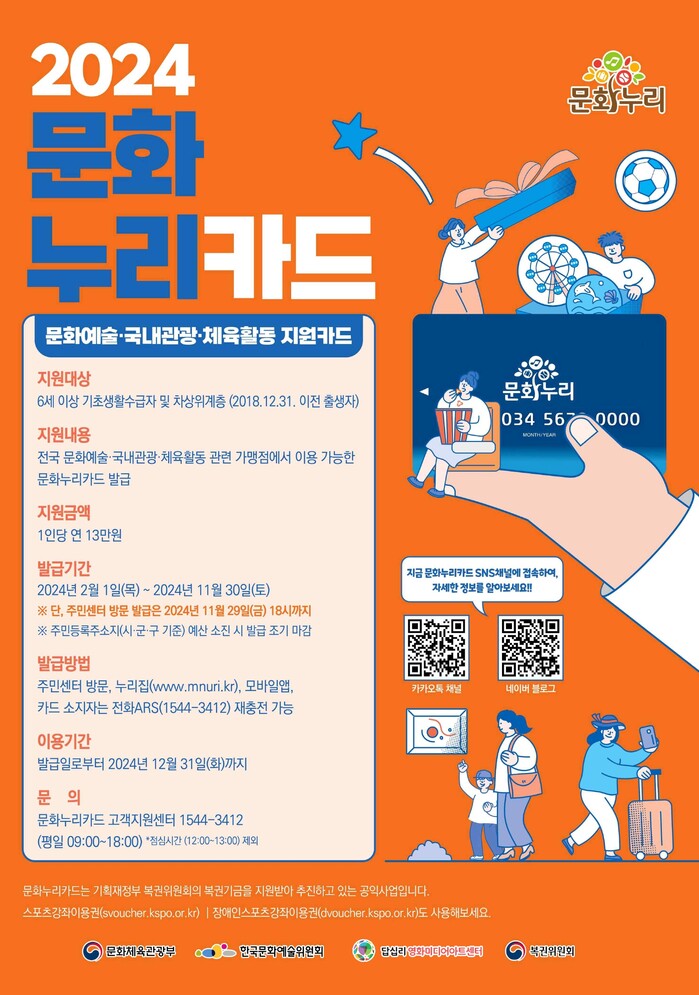 문화누리카드는 문화격차 완화를 위해 기초생활수급자, 차상위계층을 대상으로 문화예술, 체육활동을 지원하는 카드다,