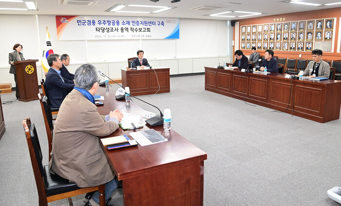 진주시는 27일 시청 5층 상황실에서 ‘민군겸용 우주항공용 소재 인증지원센터 구축 타당성조사 용역 착수보고회’를 개최했다.