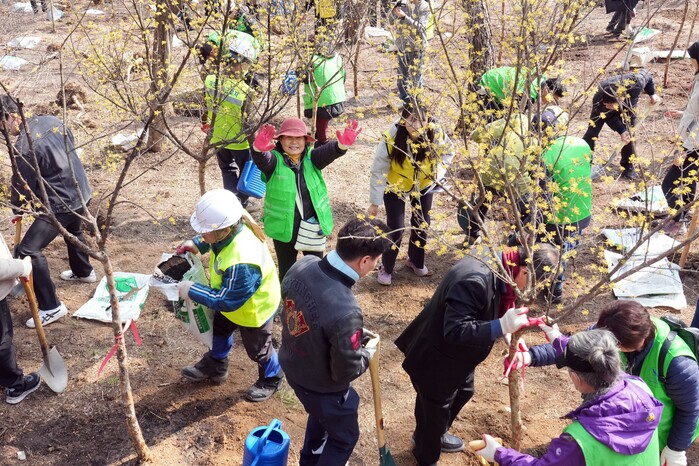 이날 참여자들은 산수유, 철쭉, 영산홍 등 총 3350여주를 식재했다.